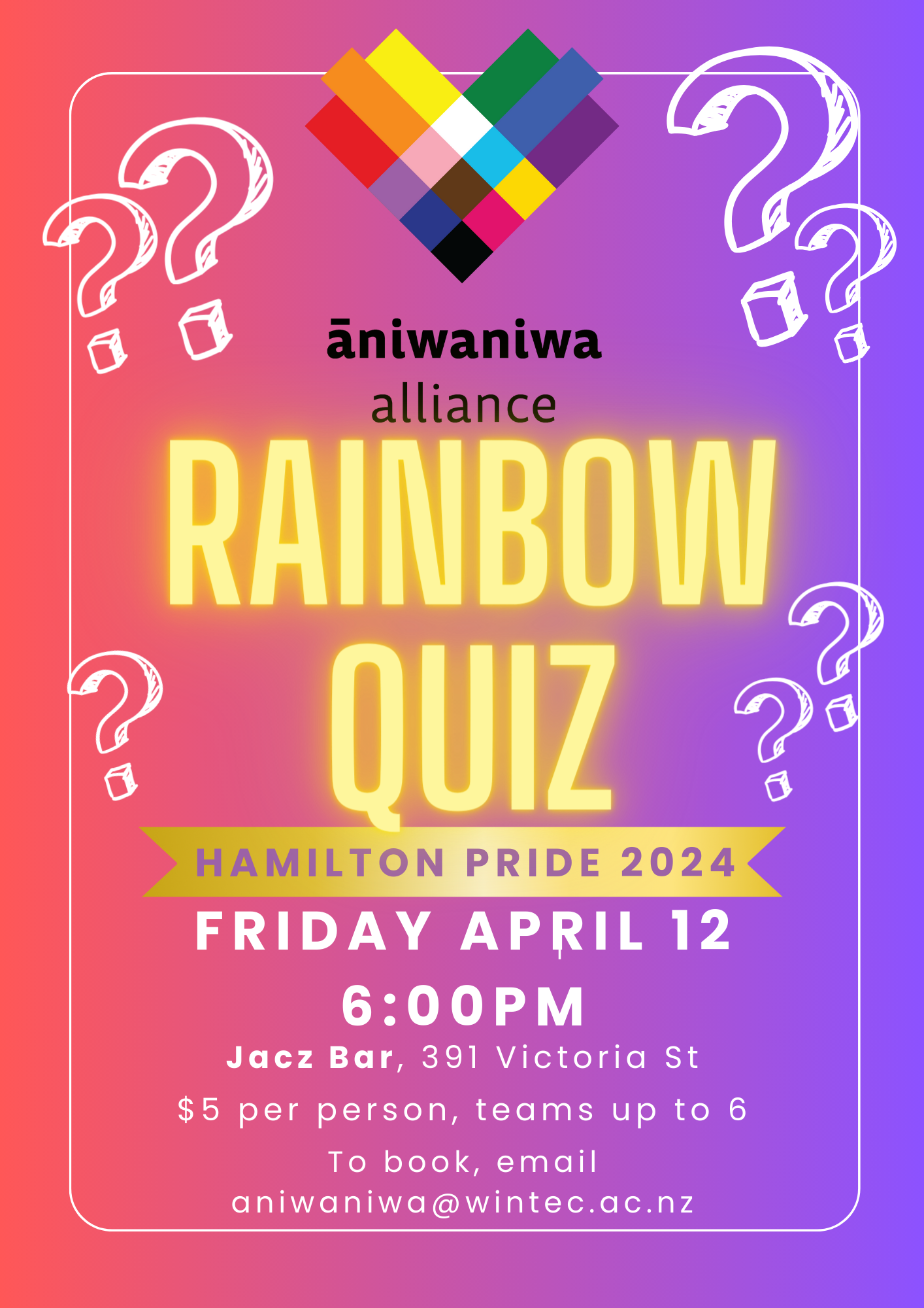 Organized by the Aniwaniwa Alliance from WINTEC, this event promises to be an evening of laughter, camaraderie, and brain-teasing challenges!